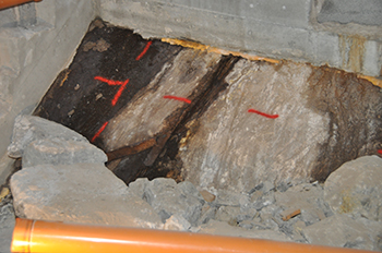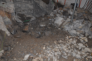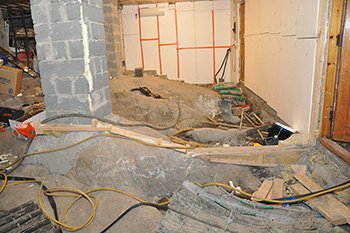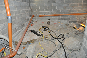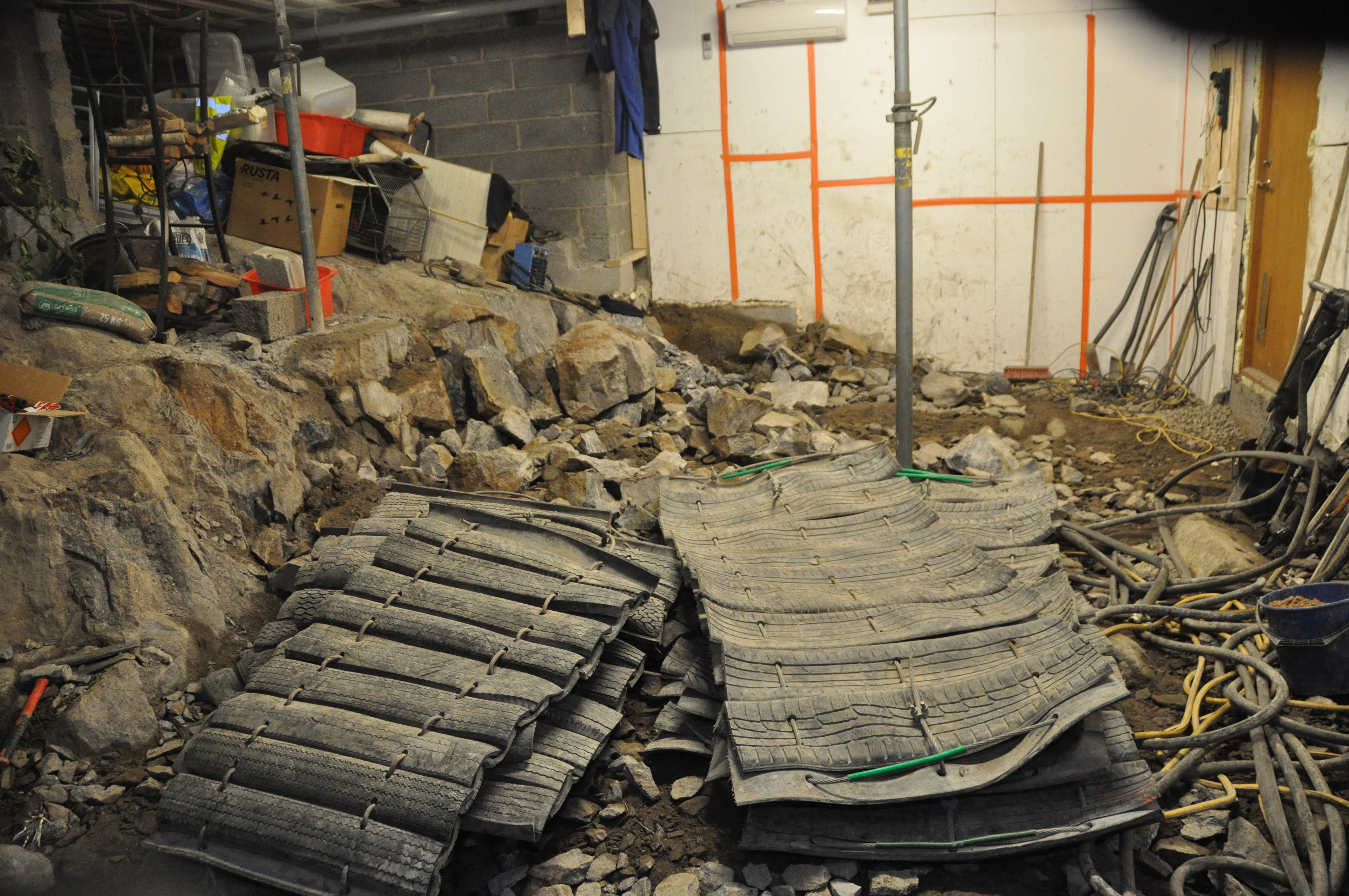 När vi spräcker sten och berg inomhus använder vi dammsugare och vattenspolade borrmaskiner för att minimera spridningen av borrkaxet.Vi använder även kilar när vi spräcker på de mer känslig platserna.