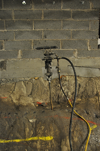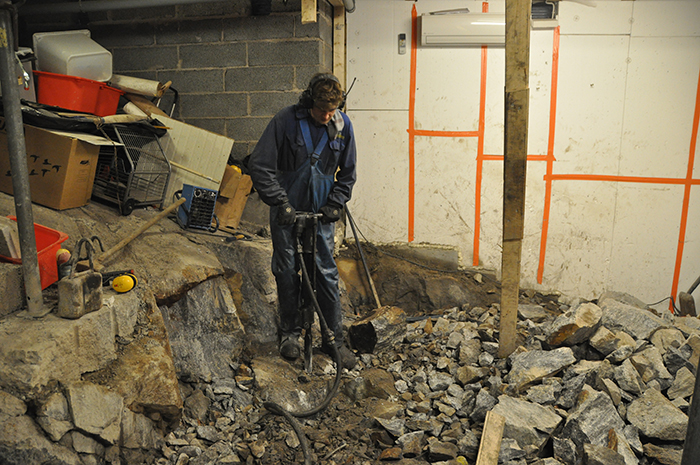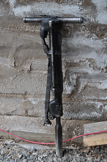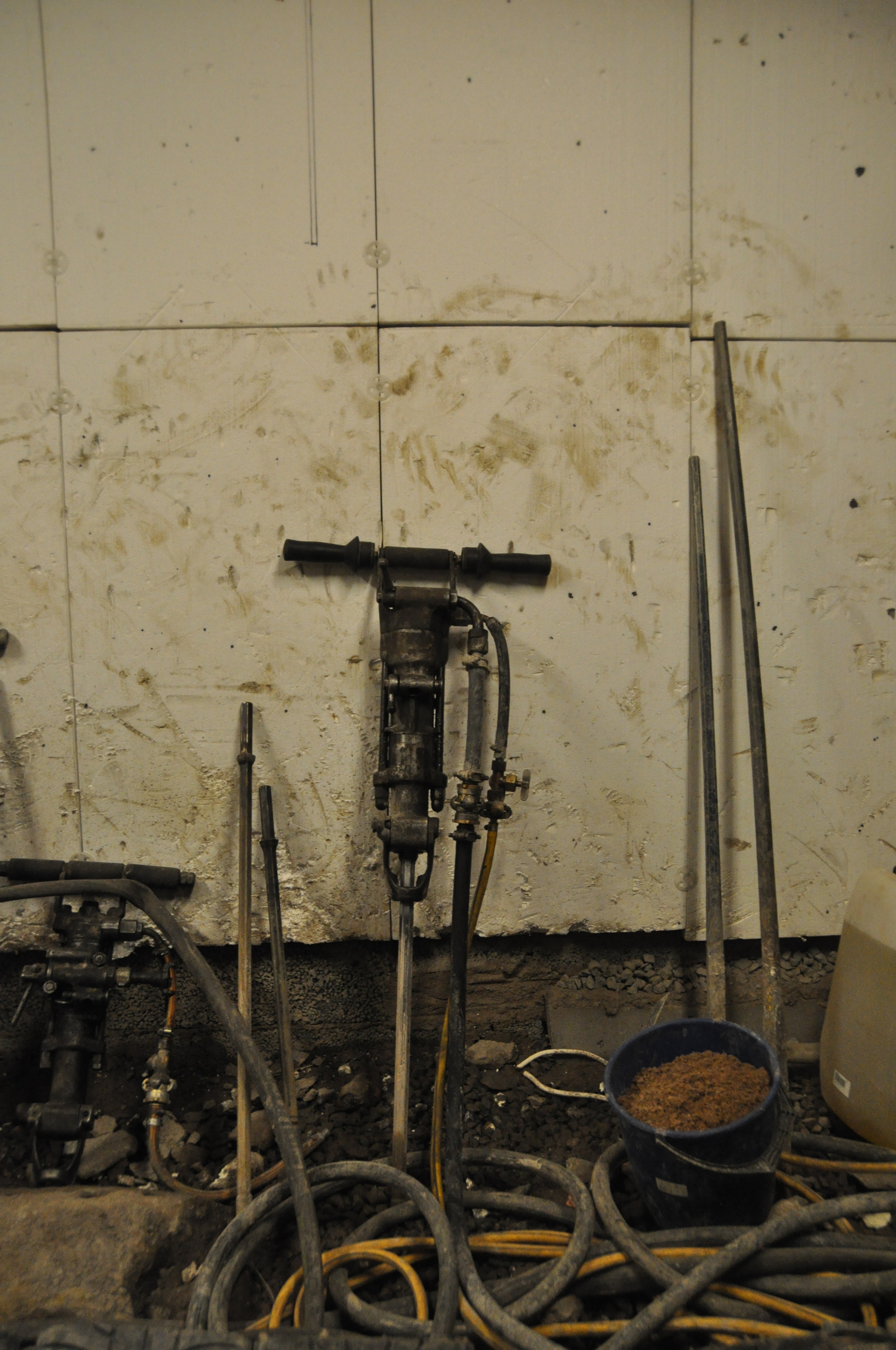Här borrar Kenneth med en Atlas copco bergborrmaskin modell 65