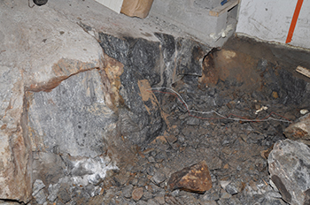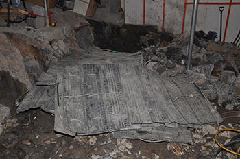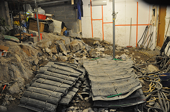 När vi spräcker sten och berg inomhus använder vi dammsugare och vattenspolade borrmaskiner för att minimera spridningen av borrkaxet.Vi använder även kilar när vi spräcker på de mer känslig platserna.