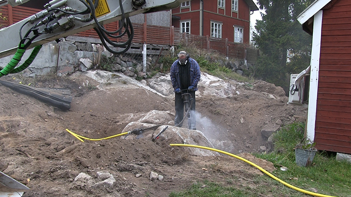 Här borrar Kenneth med en Atlas copco bergborrmaskin modell 65